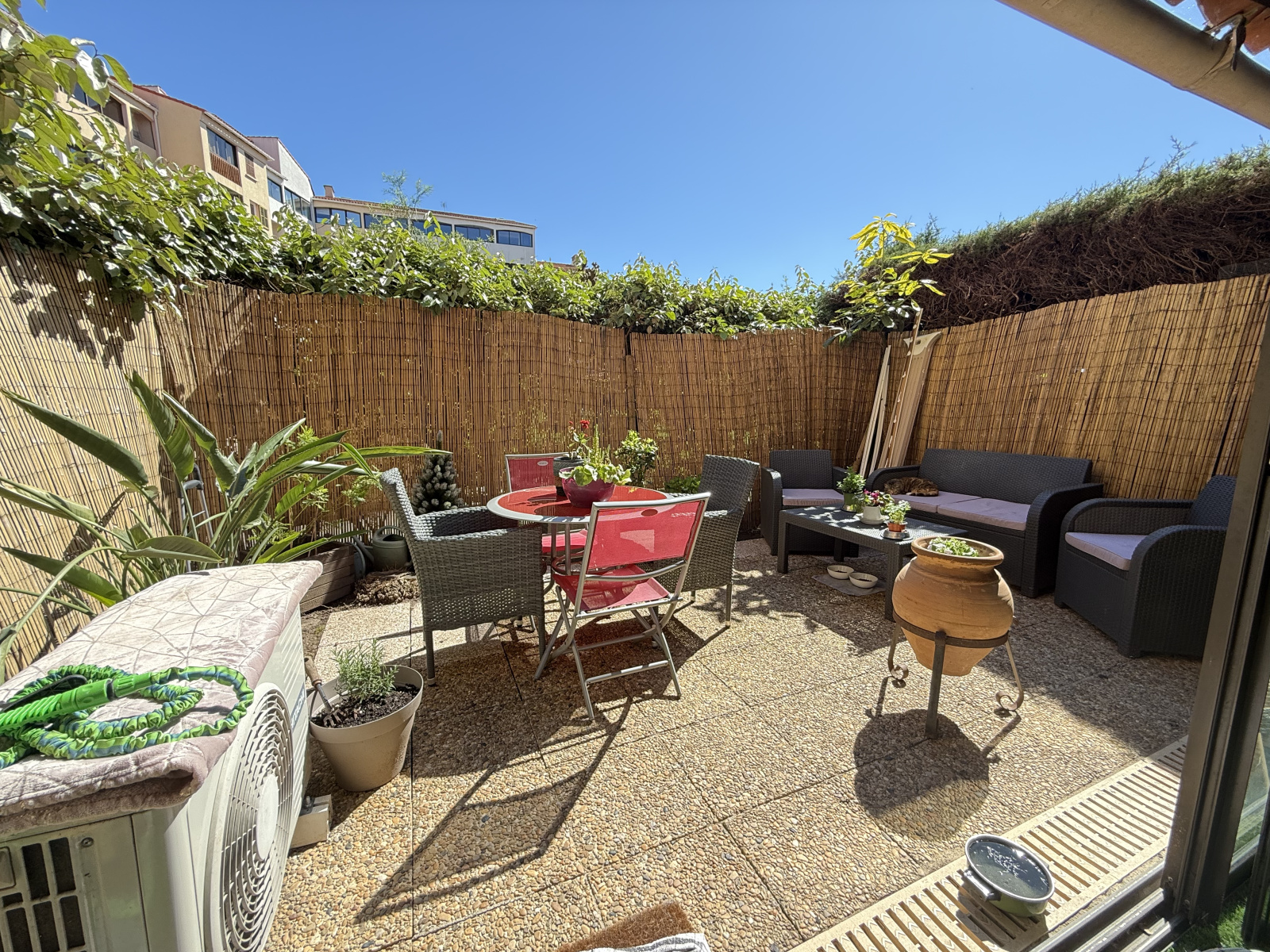 Dans une résidence gardiennée avec piscine, appartement 2 pièces en rez-de-jardin de 45,89m² loi carrez + loggia fermée de 10,69m² + jardinet, composé d'une entrée avec dressing ou coin cabine, une salle d'eau, un WC indépendant, une cuisine équipée sur séjour. Cave et garage.