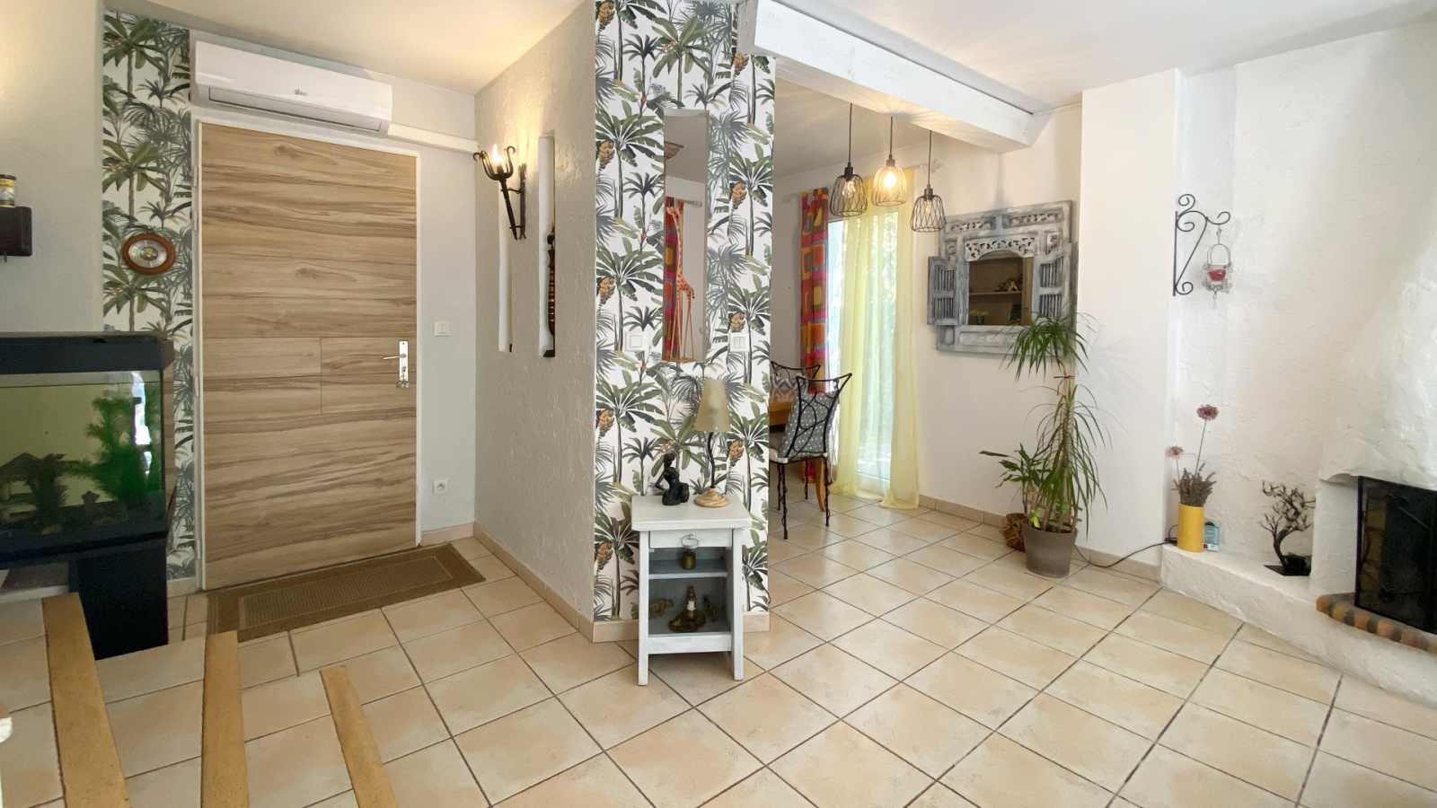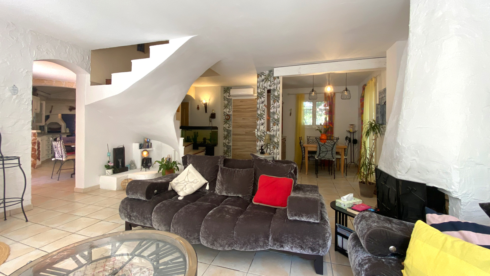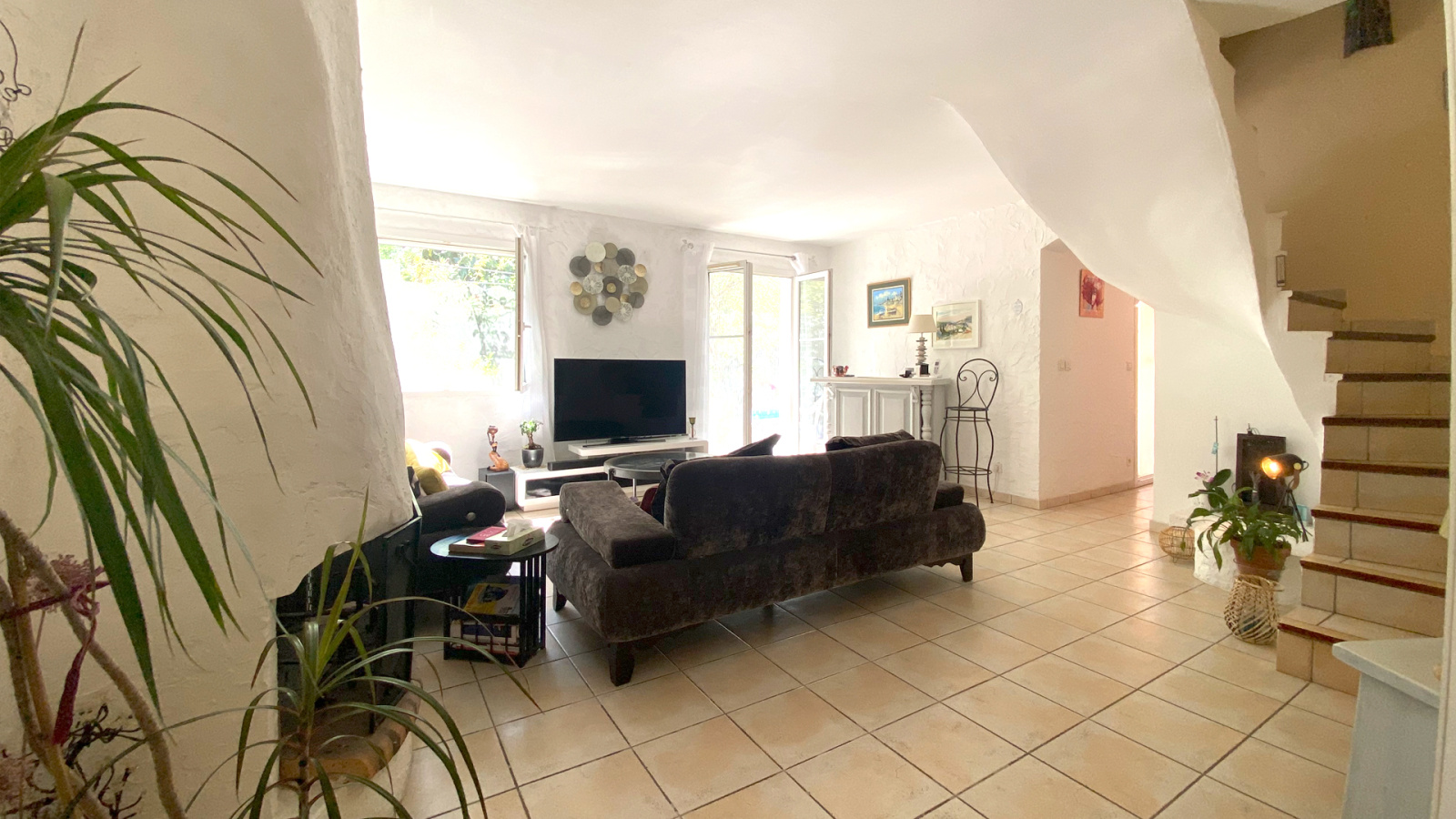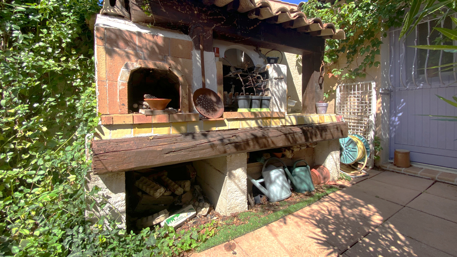 Le rez de jardin est composé d'une entrée avec placards, d'une cuisine équipée semi ouverte, d'un WC indépendant avec lave mains, d'une buanderie et d'un spacieux séjour salle à manger de 39m2 env. avec cheminée, baigné de lumière naturelle avec ses larges ouvertures sur les terrasses ombragées, la piscine et le jardin. Ces espaces prolongent l'intérieur vers l'extérieur clôturé, complété d'espèces méditerranéennes et en partie recouvert de gazon synthétique, demandant peu d'entretien.